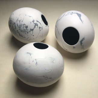 Au Japon, en 2017, l’âme « s’est incarnée » en une forme pure, sans début ni fin, un Œuf. A cette forme j’ai voulu associer des Haïkus (poèmes très courts) et des mots empruntés au bouddhisme Zen pour renforcer mon propos et donner de la force à la ligne. Ces Ecritures pour moi soulignent l’impermanence de l’être face à la nature. Arrivée à Rennes en septembre 2019, je poursuis cette recherche en sculpture mais aussi en gravure, discipline que j’ai alors commencée en Bretagne.