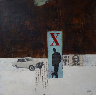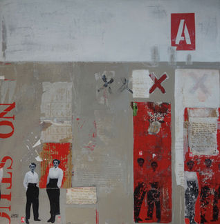 Ces papiers sont le fil conducteur de mes tableaux autour desquels s’invitent bribes de phrases, mots, signes et symboles livrés à l’imagination du spectateur qui trouvera sa propre interprétation, et font souvent référence aux nombreux pays dans lesquels j’ai vécu.
